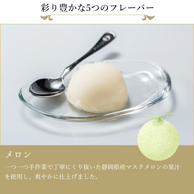 フルーツの爽やかさにクリームをプラスしてジューシーでクリーミーに仕上げた、銀座千疋屋ならではの果汁たっぷりのフルーツソルベです。