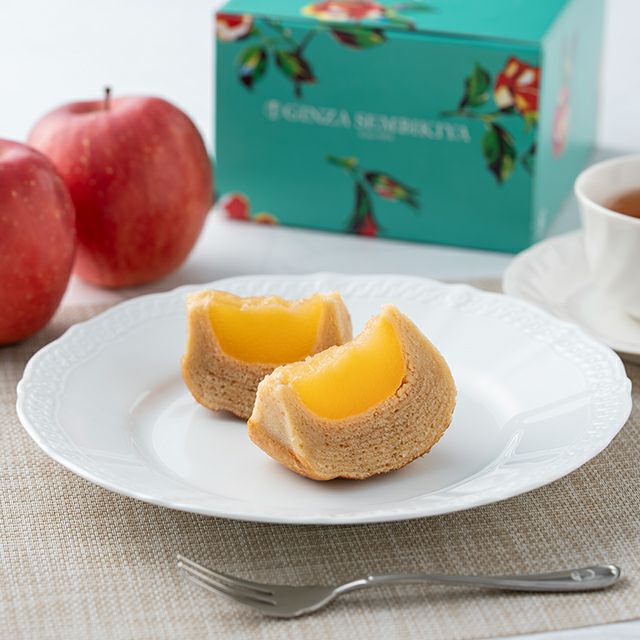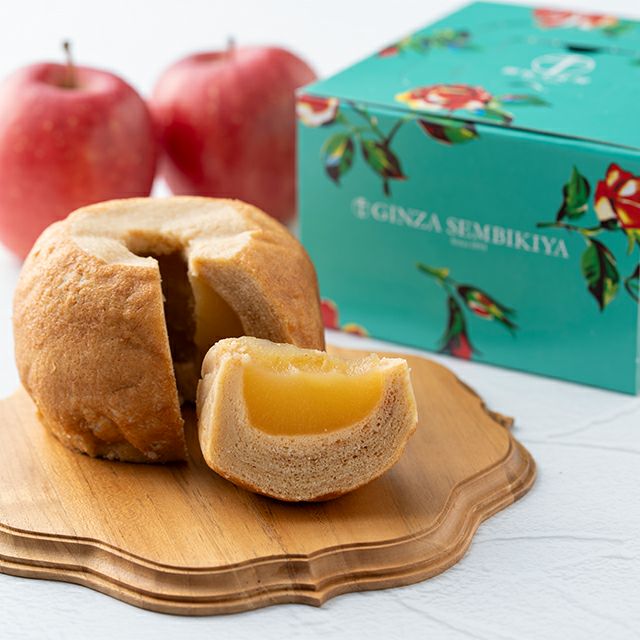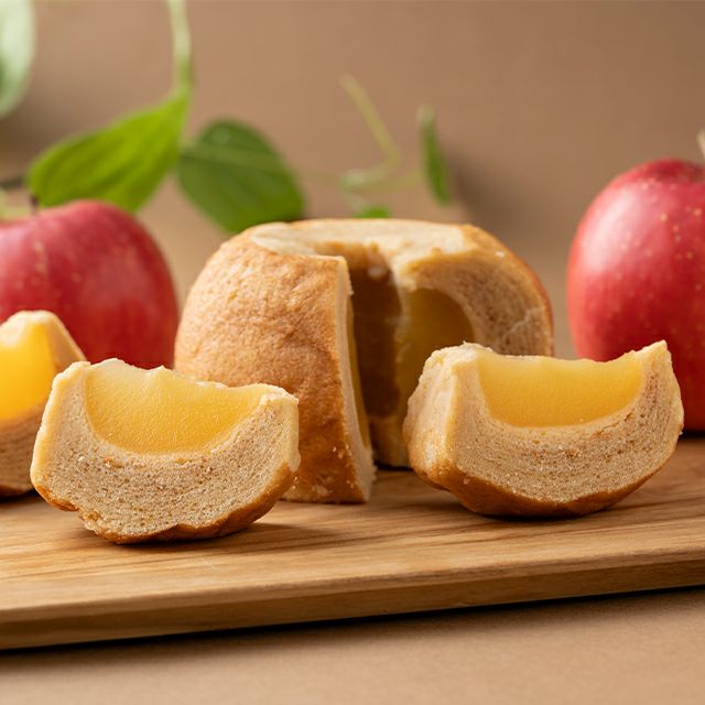 丁寧に煮あげた青森産のふじリンゴを丸ごとバームクーヘンで包み込みました。
