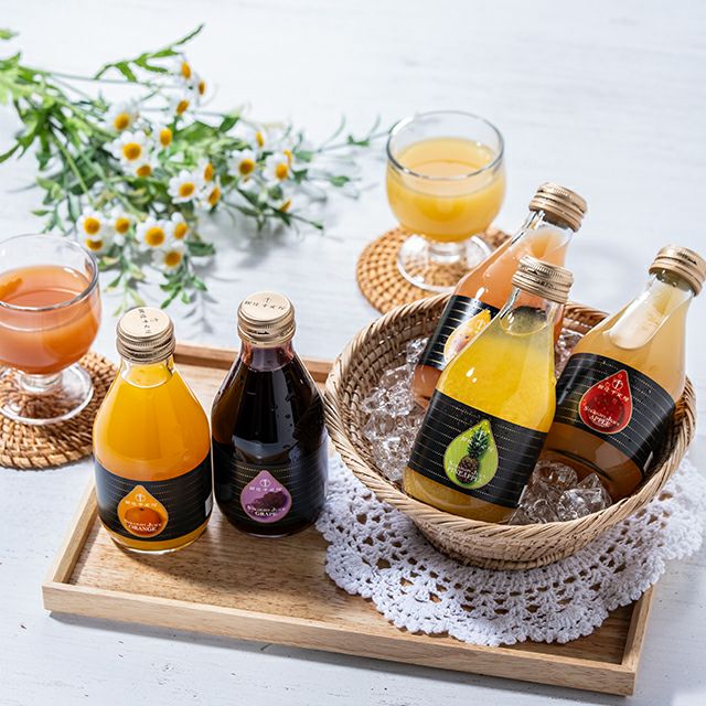 絞った果汁を加熱殺菌して瓶に詰める製法で、果実本来の香りが損なわれにくく、自然な甘みが口いっぱいに広がり、すっきりとした後味を実現しました。果物専門店ならではの上質な味わいをお楽しみいただけます。