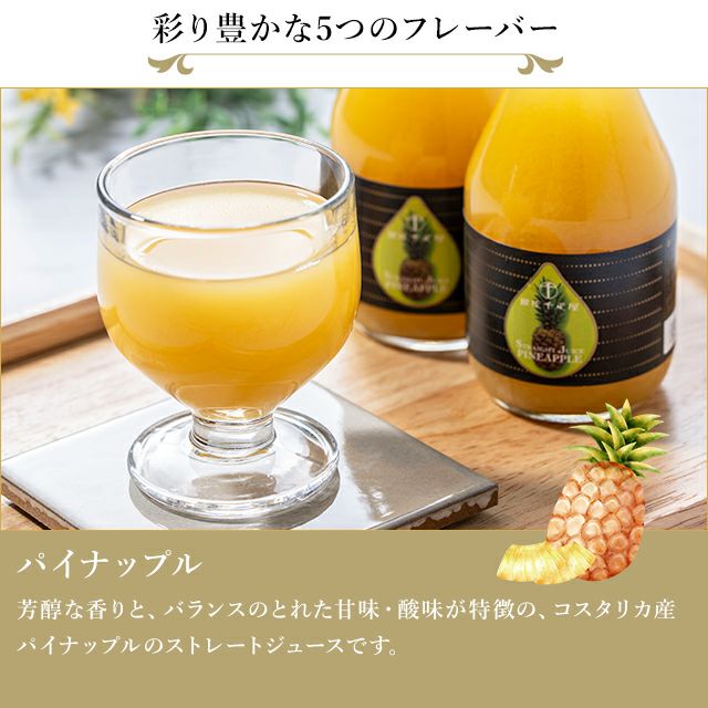 芳醇な香りと、バランスのとれた甘味・酸味が特徴の、コスタリカ産パイナップルのストレートジュースです。
