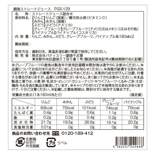 - みかん・ぶどう・りんご・グレープフルーツ・パイナップル 各180mlx各2本 計10本