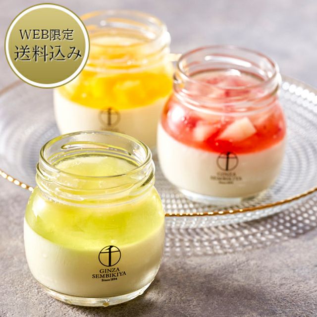 フレッシュな果物を使用した3種類のフルーツゼリーと口当たりなめらかな杏仁豆腐を瓶に閉じ込めました。