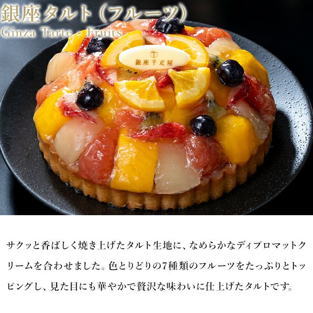 色とりどりの7種類のフルーツをたっぷりとトッピングし、見た目にも華やかで贅沢な味わいに仕上げたタルトです。
