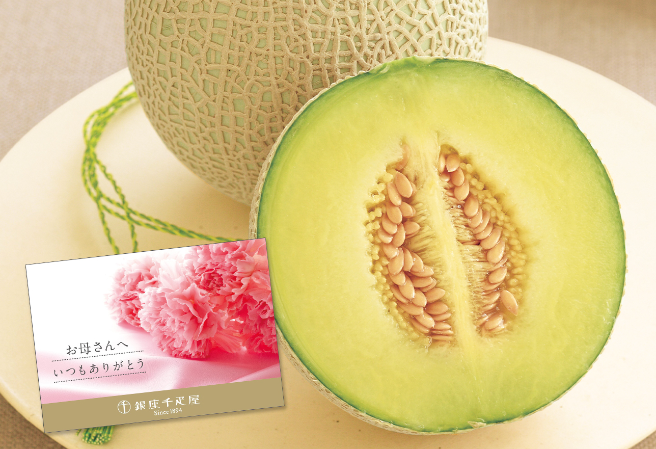 化粧箱入りのマスクメロン(約1.3kg)を母の日限定・数量限定でご用意しました。母の日カード付