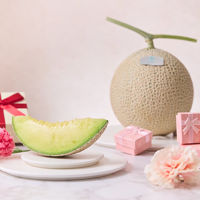 化粧箱入りのマスクメロン(約1.3kg)を母の日限定・数量限定でご用意しました。母の日カード付