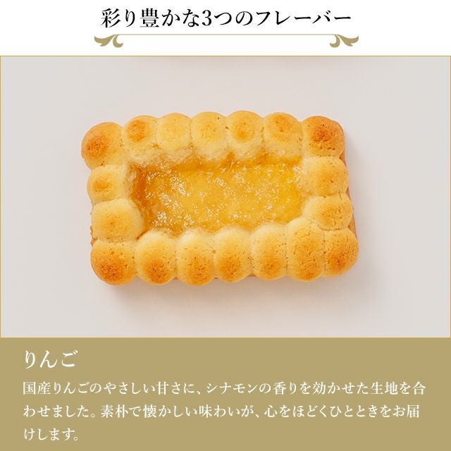 一度焼いたクッキーの上にさらに生地を重ねて焼く「二度焼き製法」で、しっとり、ホロッとほどけるやさしい口あたりに仕上げました。