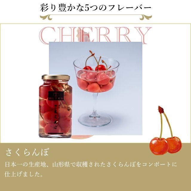 日本一の生産地、山形県で収穫されたさくらんぼをコンポートに仕上げました。
