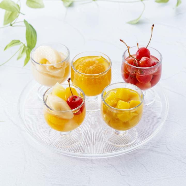 まるごとみかん、白桃、さくらんぼ、フルーツポンチ、マンゴー 各155g