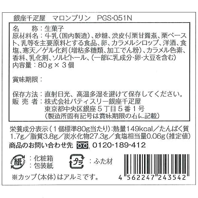 銀座マロンプリン×3(各80g)