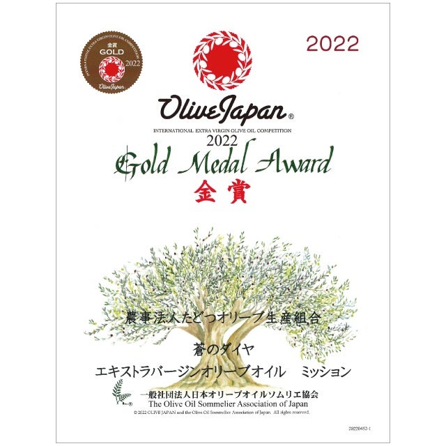 OLIVE JAPAN 国際オリーブオイルコンテストにて金賞を受賞している、 国産のエキストラバージンオリーブオイルです。