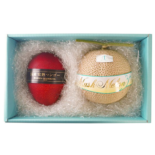 マスクメロン×1(静岡県産)、特選国産完熟マンゴー(4Lサイズ)×1
