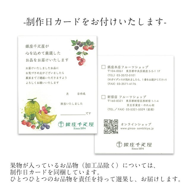 果物が入っているお品物(加工品除く)については、制作日カードを同梱しています。