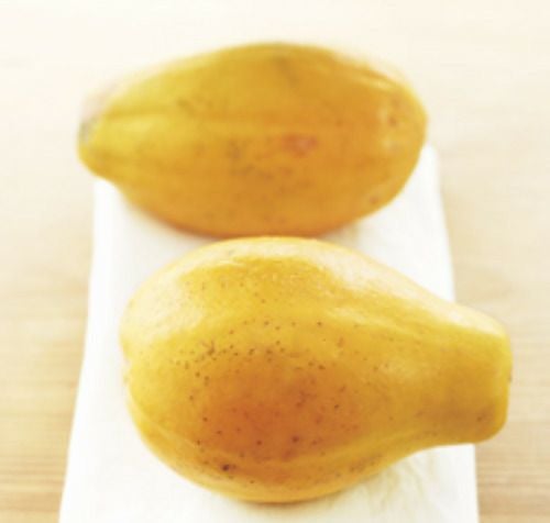 ねっとりとした感触、こってりした甘さ、それに独特の香りがあって、これこそトロピカル・フルーツという感じのすばらしさです。ナイフを入れるときは、中の扁平な種に気をつけながら、魚のように三枚におろすと食べやすくなります。両側の皮の内側のスプーンですくい、真ん中の種のまわりをしゃぶるとおいしく食べられます。マンゴーはあまり上品には食べられません。口の周りが汚れるのもかまわず、しゃぶりつくのが最高の味わい方です。