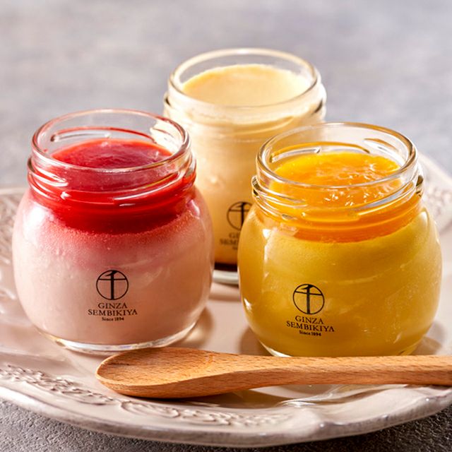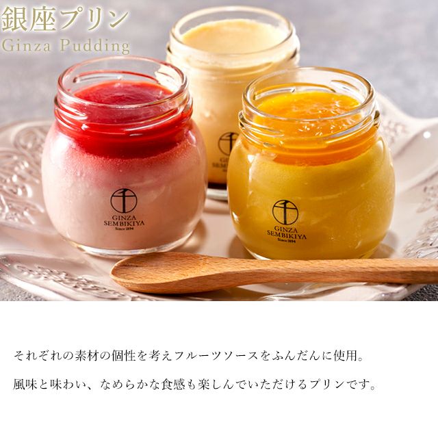 それぞれの素材の個性を考えフルーツソースをふんだんに使用。風味と味わい、なめらかな食感も楽しんでいただけるプリンです。