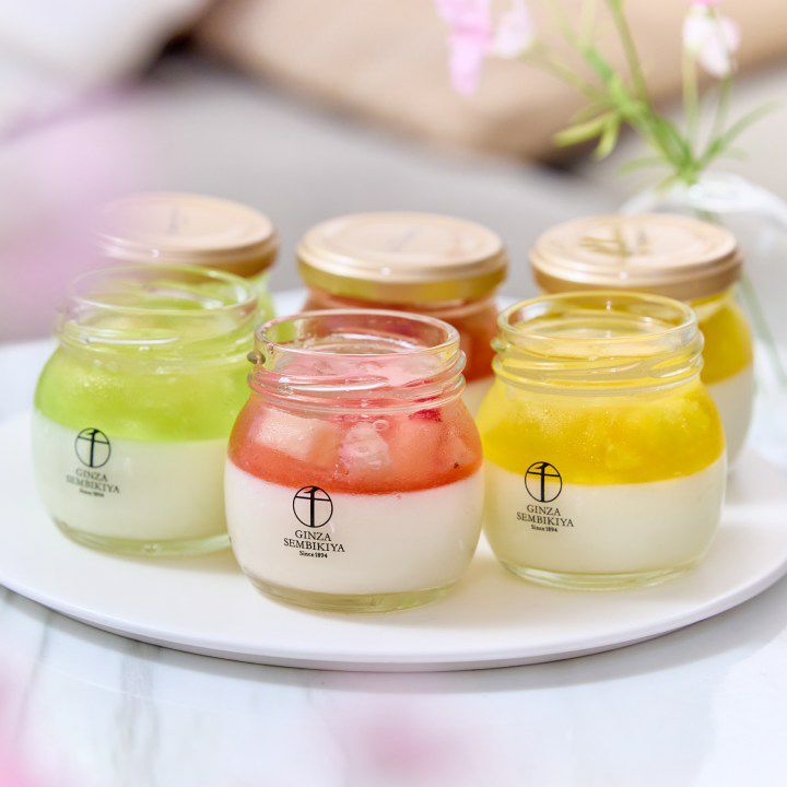 フレッシュな果物を使用した3種類のフルーツゼリーと口当たりなめらかな杏仁豆腐を瓶に閉じ込めました。