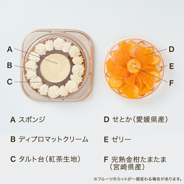 ■フルーツゼリー:せとか(愛媛県産)、金柑(宮崎県産)、砂糖/ゲル化剤(増粘多糖類)