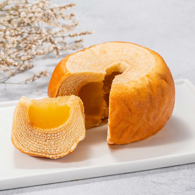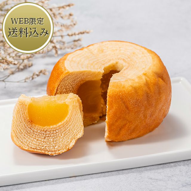 丁寧に煮上げた甘酸っぱい国産のふじりんごを、丸ごとバウムクーヘンで包みました。