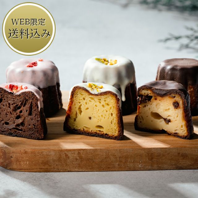 ローストピスタチオのペーストを生地に加え、トップにホワイトコーティングチョコを掛け、厳選したピスタチオを飾りました。コーティングチョコの甘さとピスタチオの香ばしさが絶妙な至高のカヌレです。
