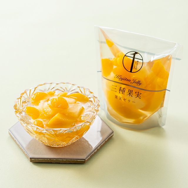 黄桃、蜜柑、パインを詰合せました。三種の果実が楽しい食感と味わいのハーモニーを奏でます。