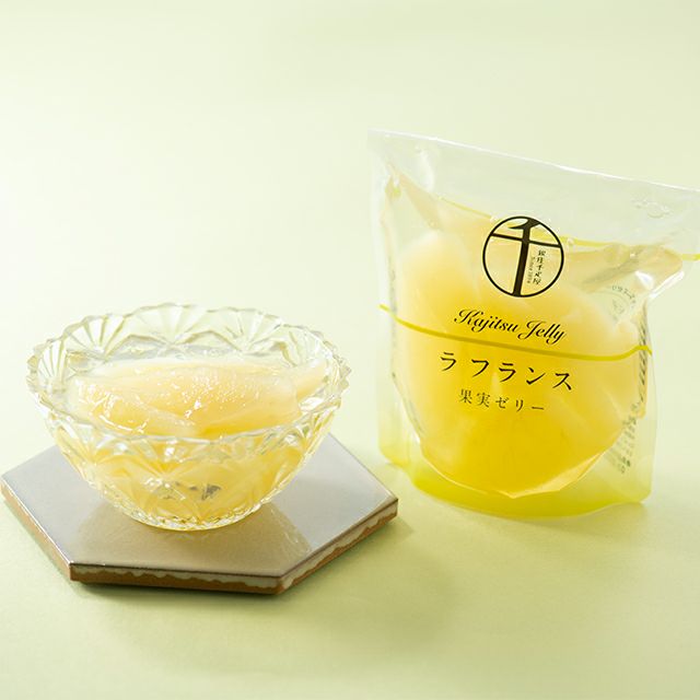 なめらかでとろけるような口どけのゼリーは、果実の美味しさをやさしく包み込み、上品な味わいを引き立てます。