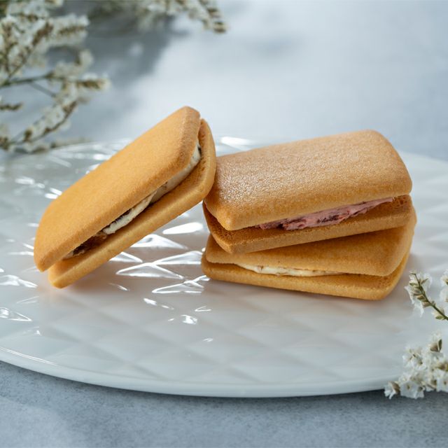 なめらかなフルーツクリームと、香り豊かな果肉を、香ばしいクッキーでサンドした銀座千疋屋オリジナルのフルーツサンドです。