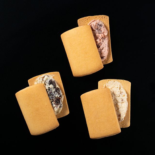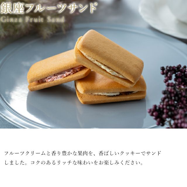 なめらかなフルーツクリームと、香り豊かな果肉を、香ばしいクッキーでサンドした銀座千疋屋オリジナルのフルーツサンドです。