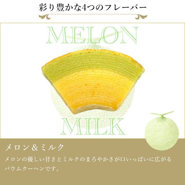 メロンの優しい甘さとミルクのまろやかさが口いっぱいに広がるバウムクーヘンです。