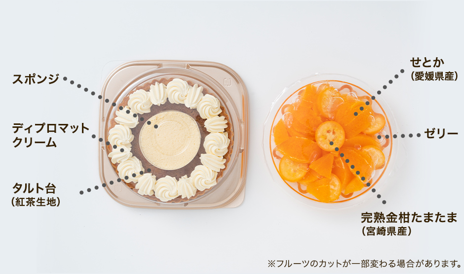 ■フルーツゼリー:せとか(愛媛県産)、金柑(宮崎県産)、砂糖/ゲル化剤(増粘多糖類)
