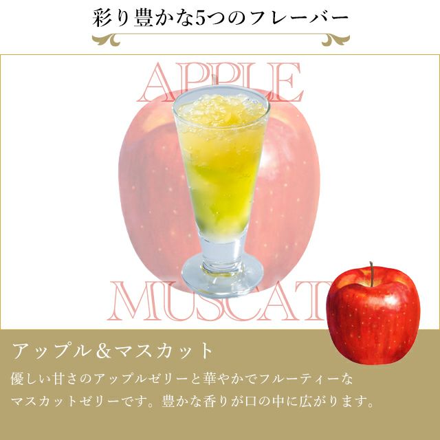 フルーツの美味しさをギュッと閉じ込めた、ジューシーな果肉入りのゼリーと、彩りも美しい2層のゼリーの組み合わせです。