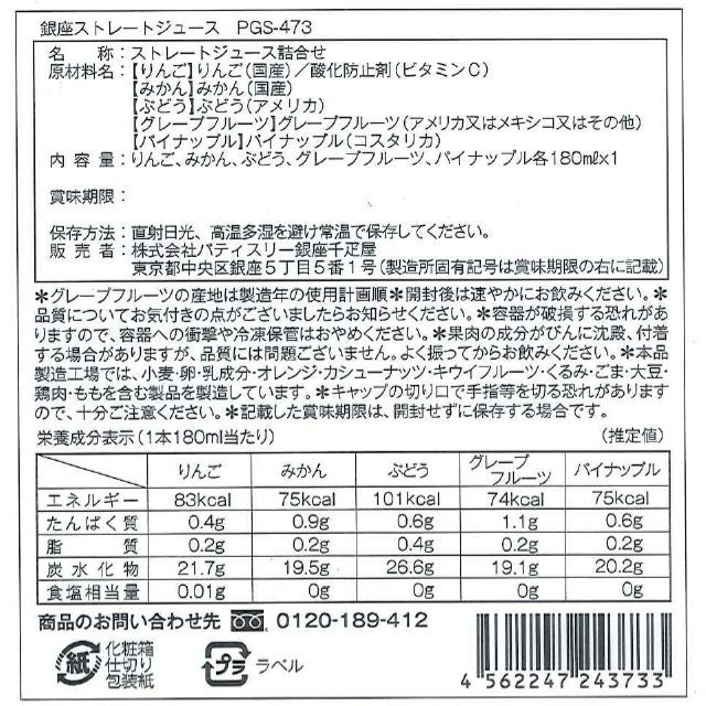 また、果実由来の固形物が瓶に沈殿する場合がありますが、品質には問題ありません。開封前によく振ってからお飲みください。