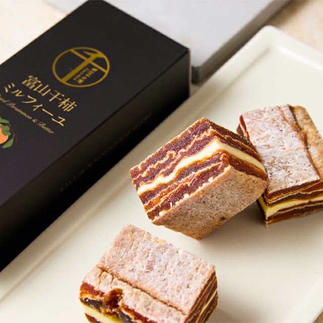 富山干柿と国産加塩バターをひとつひとつ丁寧に重ねました。