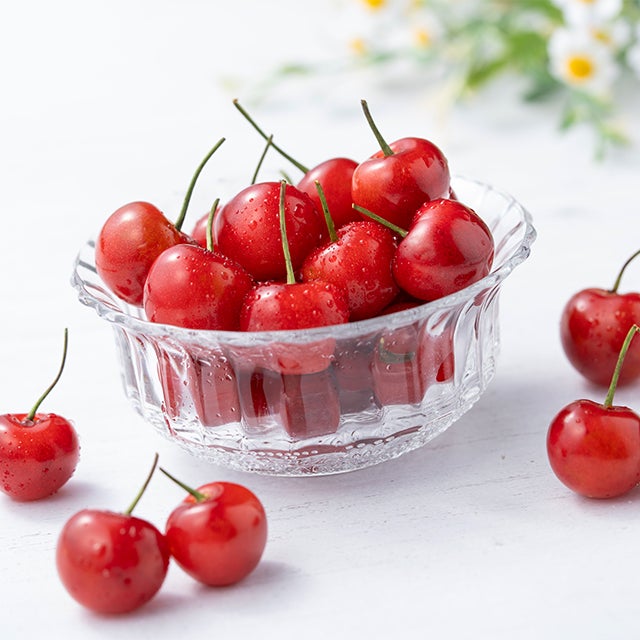 さくらんぼという呼び名は、桜桃(おうとう)の愛称です。正式な名称は西洋実桜(せいようみざくら)と言います。日本では東北地方、北海道、長野、山梨などが主な産地で、なかでも最も収穫量が多いのが山形県です。姿かたちの美しさだけでなく、艶やかに光る果実には、濃厚な甘みと適度な酸味がバランス良く、その味わいは格別です。