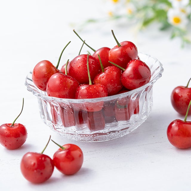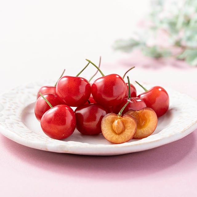 さくらんぼという呼び名は、桜桃(おうとう)の愛称です。正式な名称は西洋実桜(せいようみざくら)と言います。日本では東北地方、北海道、長野、山梨などが主な産地で、なかでも最も収穫量が多いのが山形県です。代表品種は佐藤錦、高砂、紅秀峰などがありますが、中でも佐藤錦は、鮮やかな色合い、愛らしい姿はまさに初夏の代名詞。姿かたちの美しさだけでなく、艶やかに光る果実には、濃厚な甘みと適度な酸味がバランス良く、その味わいは格別です。