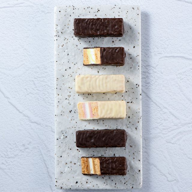 チョコレートを敷いたパイ生地で、濃厚なアイスクリーム・フルーツソースをサンドしました。