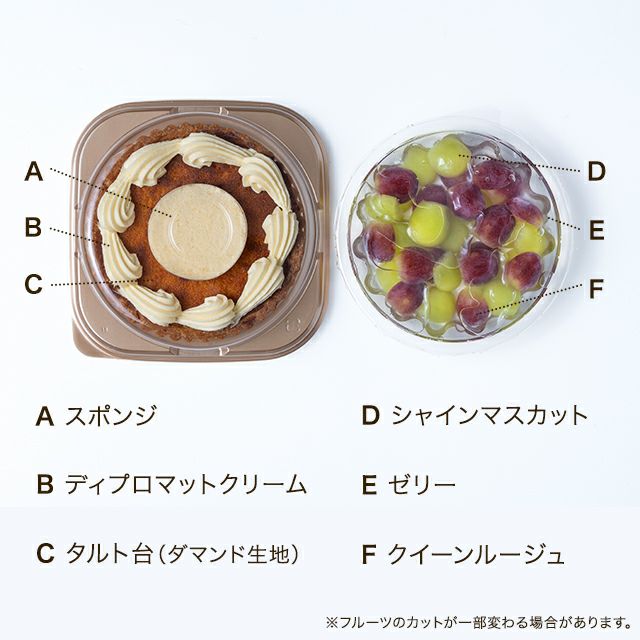 ・フルーツゼリー:シャインマスカット(国産)、クイーンルージュ、砂糖/ゲル化剤(増粘多糖類)