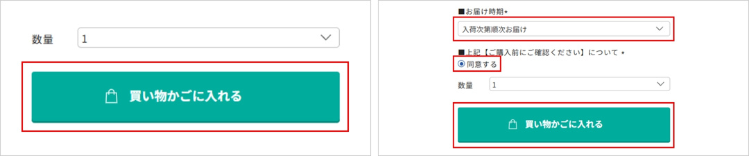 ご希望の商品ページから「買い物かごに入れる」ボタンをクリックしてカートに入れます。