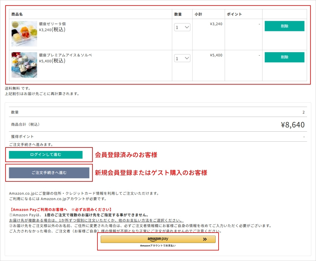 ・会員未登録またはゲスト購入の場合→「ご注文手続きへ進む」