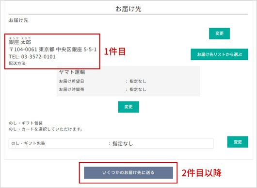 2. 2件目以降は、ページ内にある「いくつかのお届け先に送る」ボタンをクリックしてください。