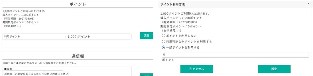 「変更」ボタンよりご利用の有無、使用ポイント数を設定後「設定」ボタンをクリックすることで反映されます。