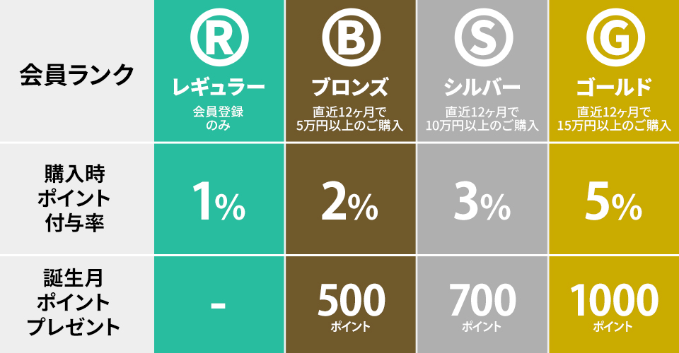 ゴールド会員:直近12ヶ月で15万円以上のご購入