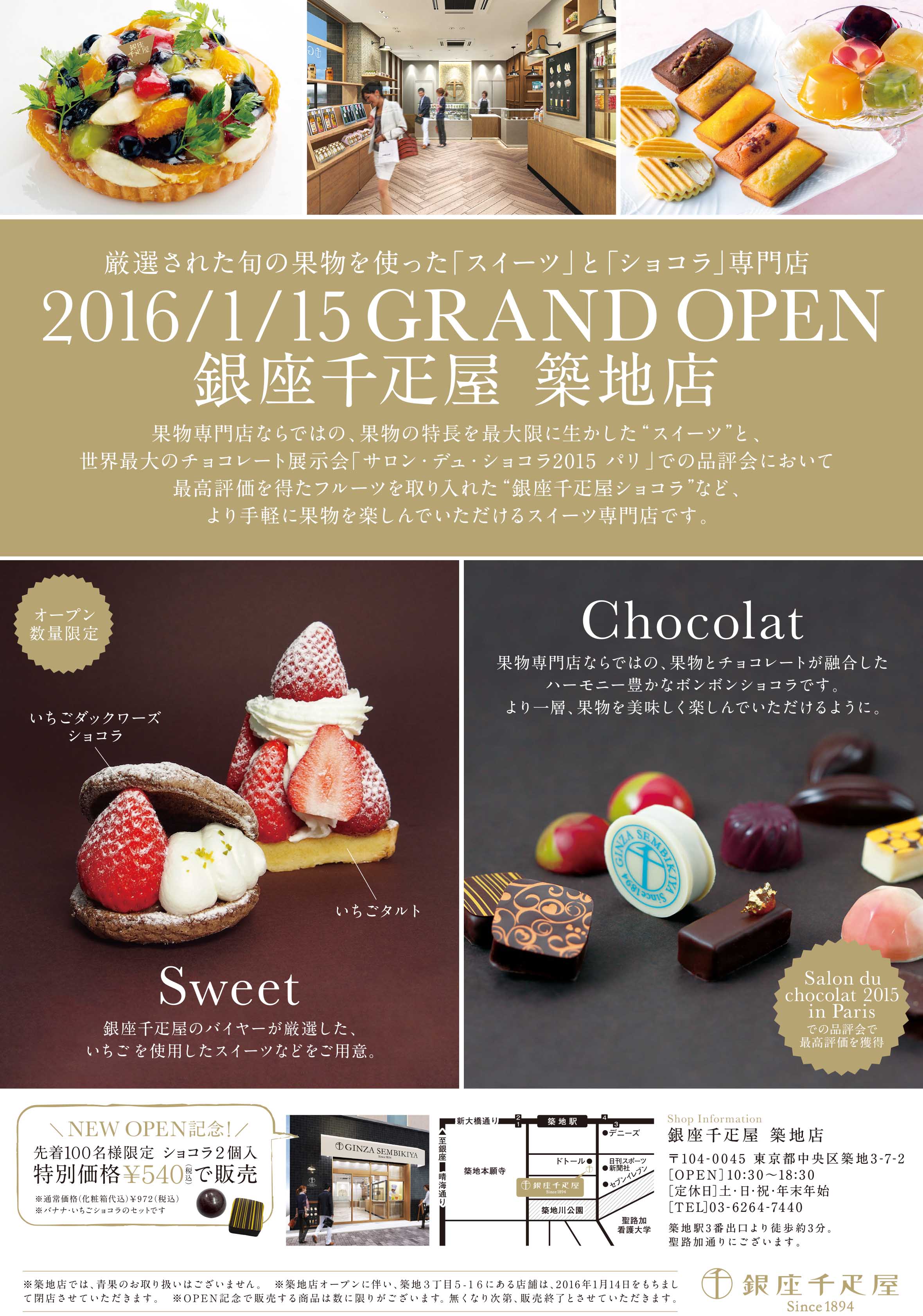 約10年ぶりとなる新店舗「銀座千疋屋 築地店」を2016年1月15日(金)にグランドオープンいたします。