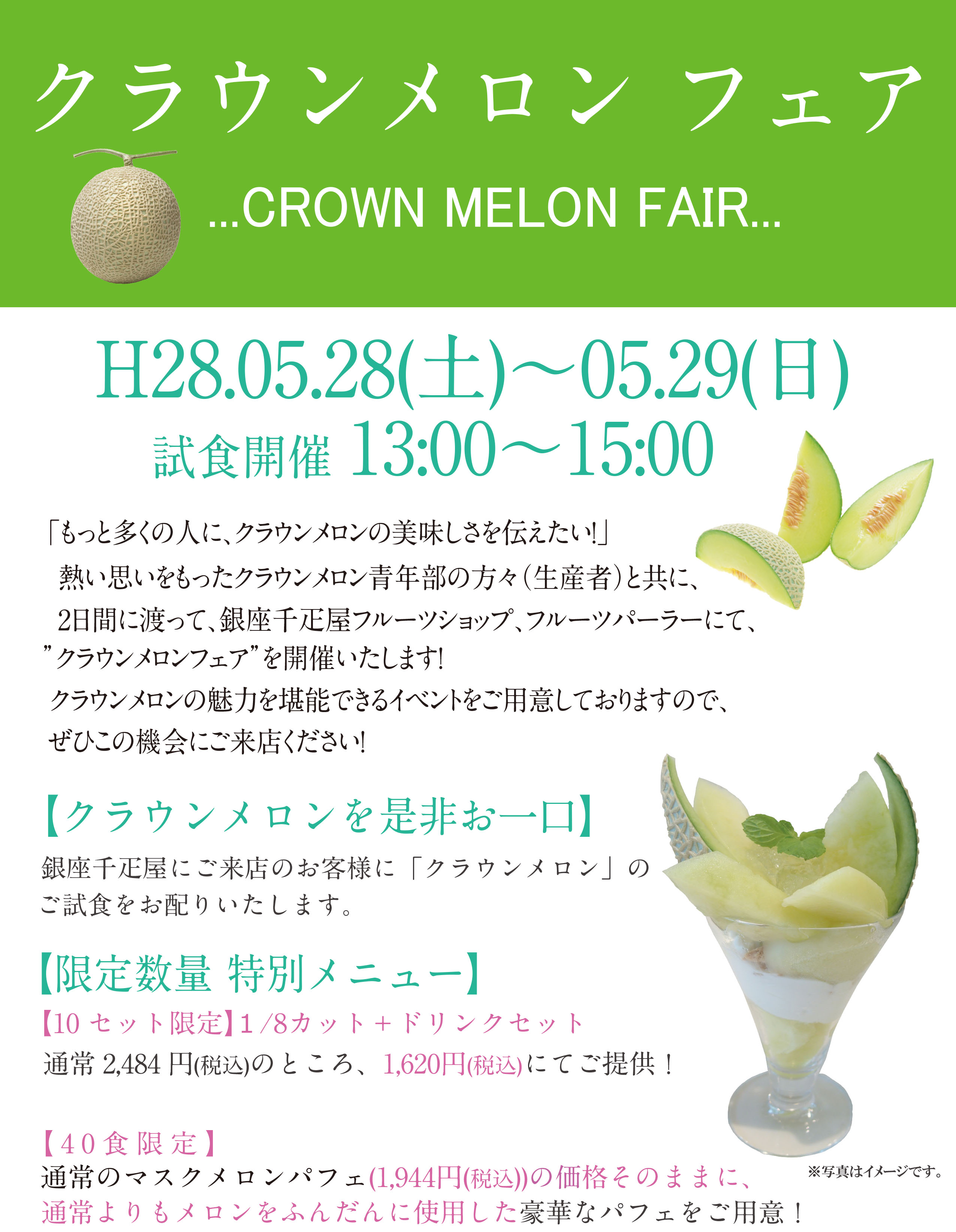 銀座千疋屋銀座本店(中央区銀座5-5-1)にて、2016年5月28日(土)・5月29日(日) の2日間に渡り、静岡県産 “クラウンメロン フェア”を開催いたします。