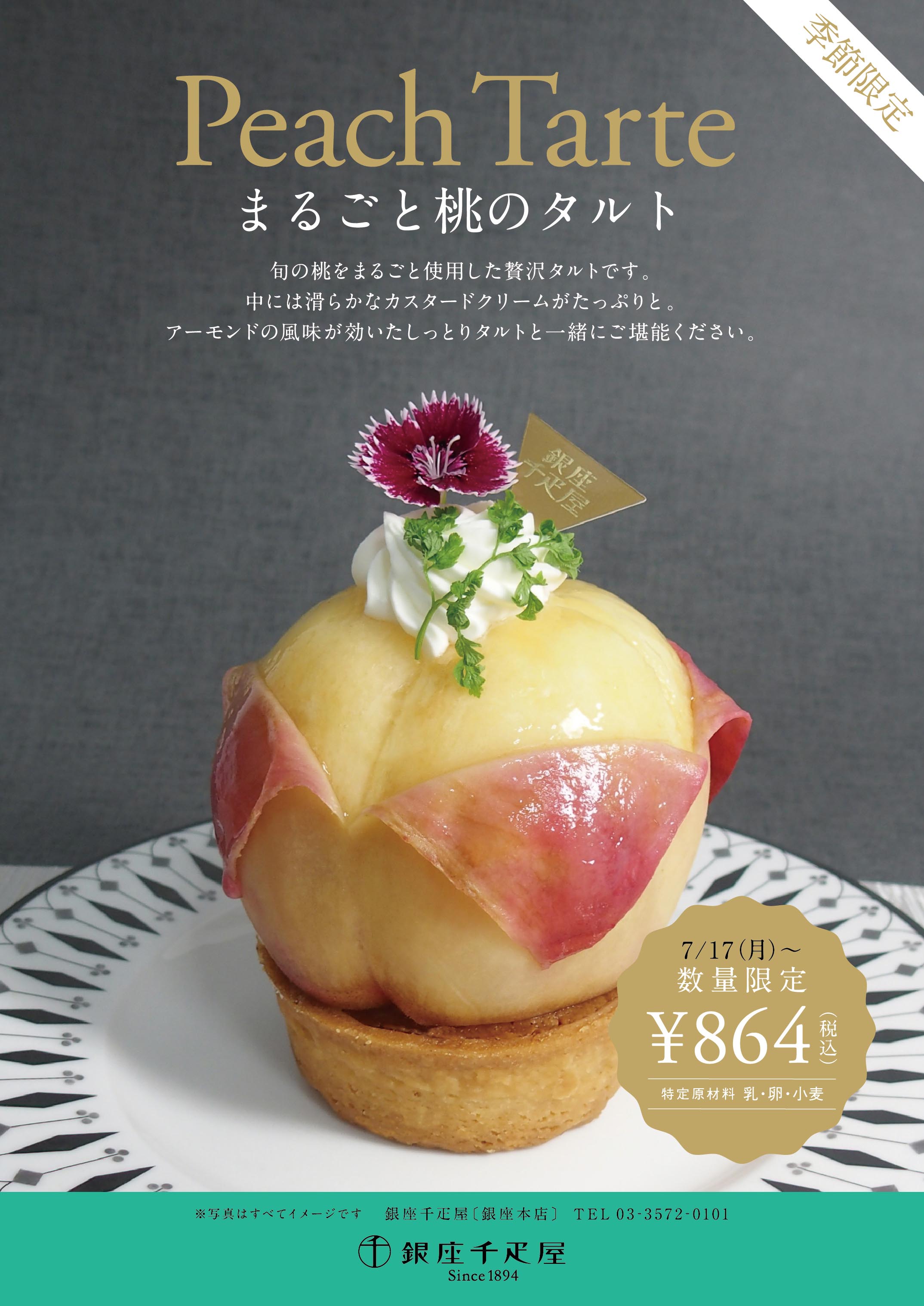 銀座千疋屋・パティスリー銀座千疋屋において、2017年7月17日(月)より、季節・数量限定 ”まるごと桃のタルト”が登場いたします。
