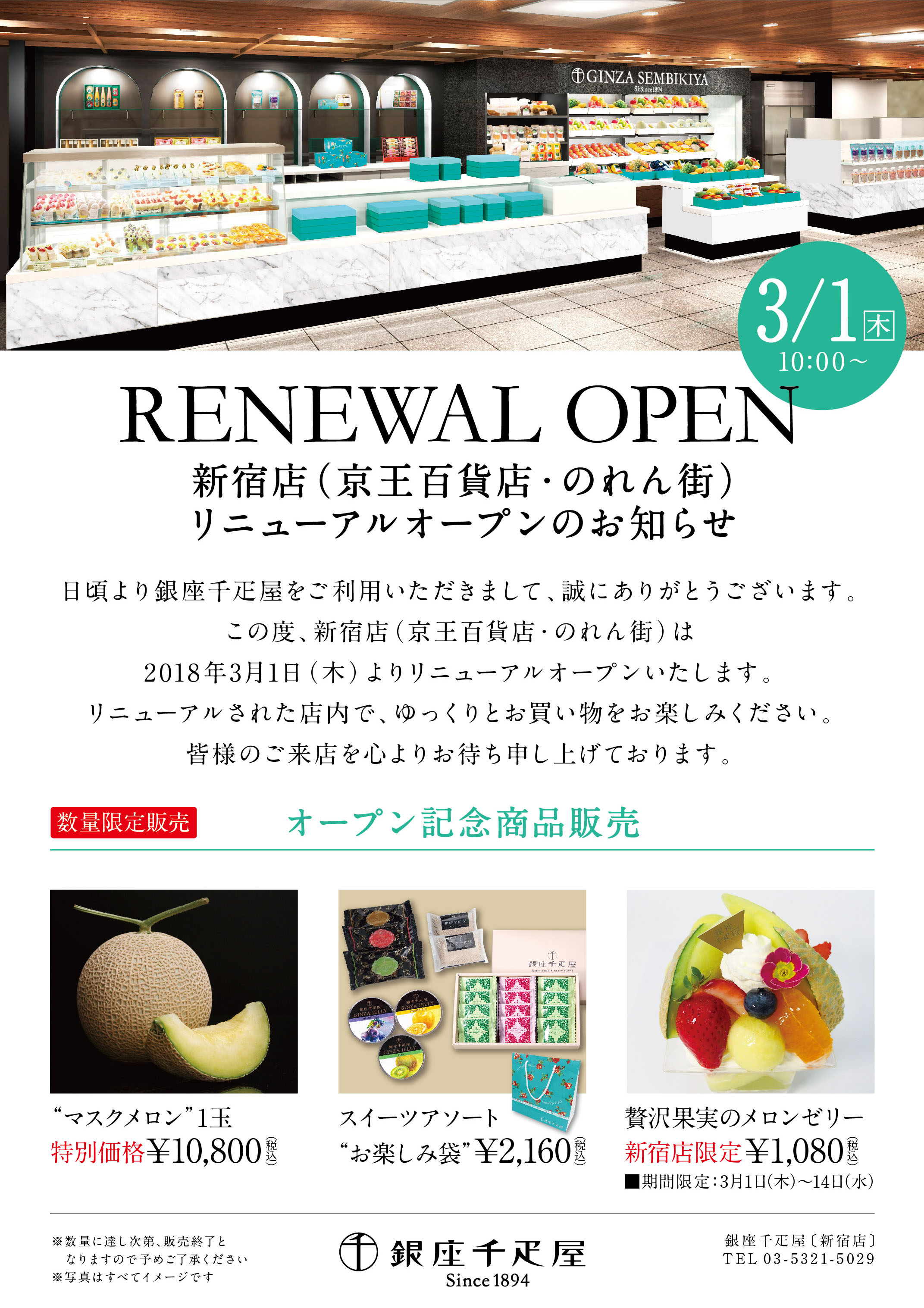 新宿店(京王百貨店・のれん街)3/1(木)リニューアルオープンのお知らせ