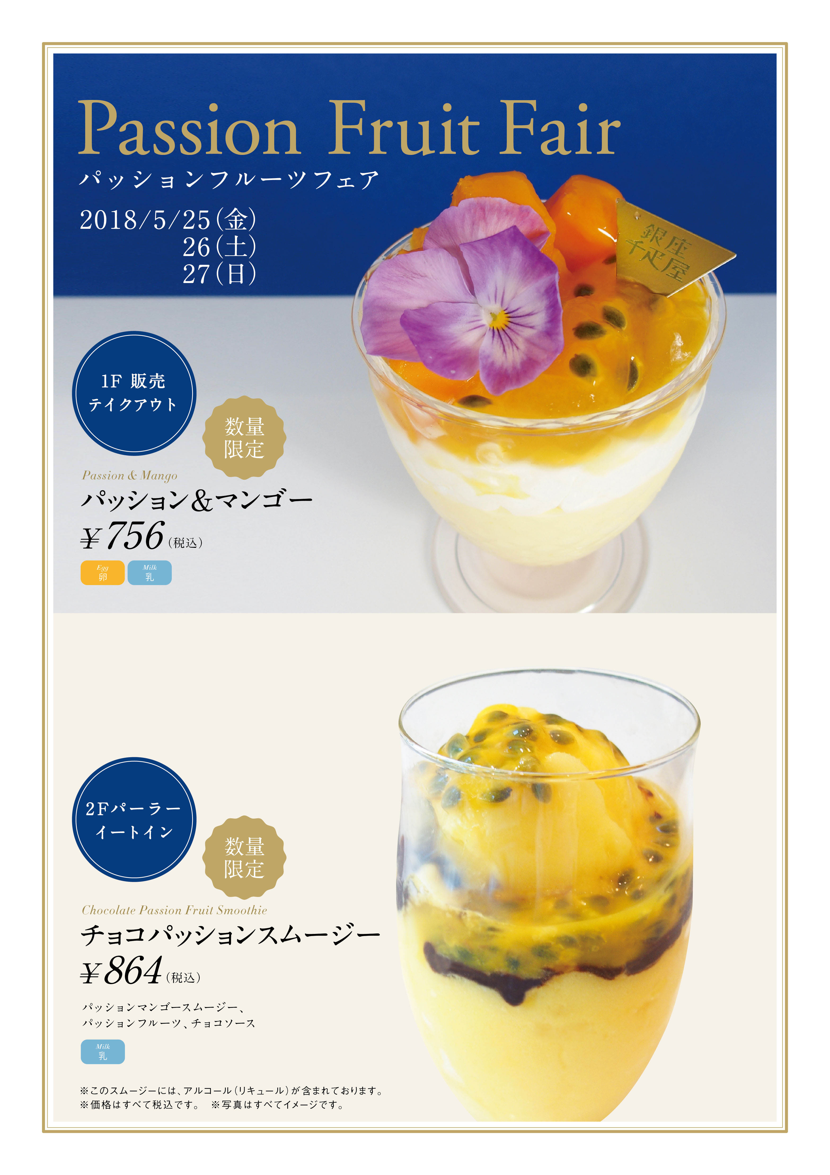 銀座千疋屋・パティスリー銀座千疋屋は、5月25日(金)〜5月27日(日)の期間限定にて、パッションフルーツを使用した限定スイーツを販売いたします。