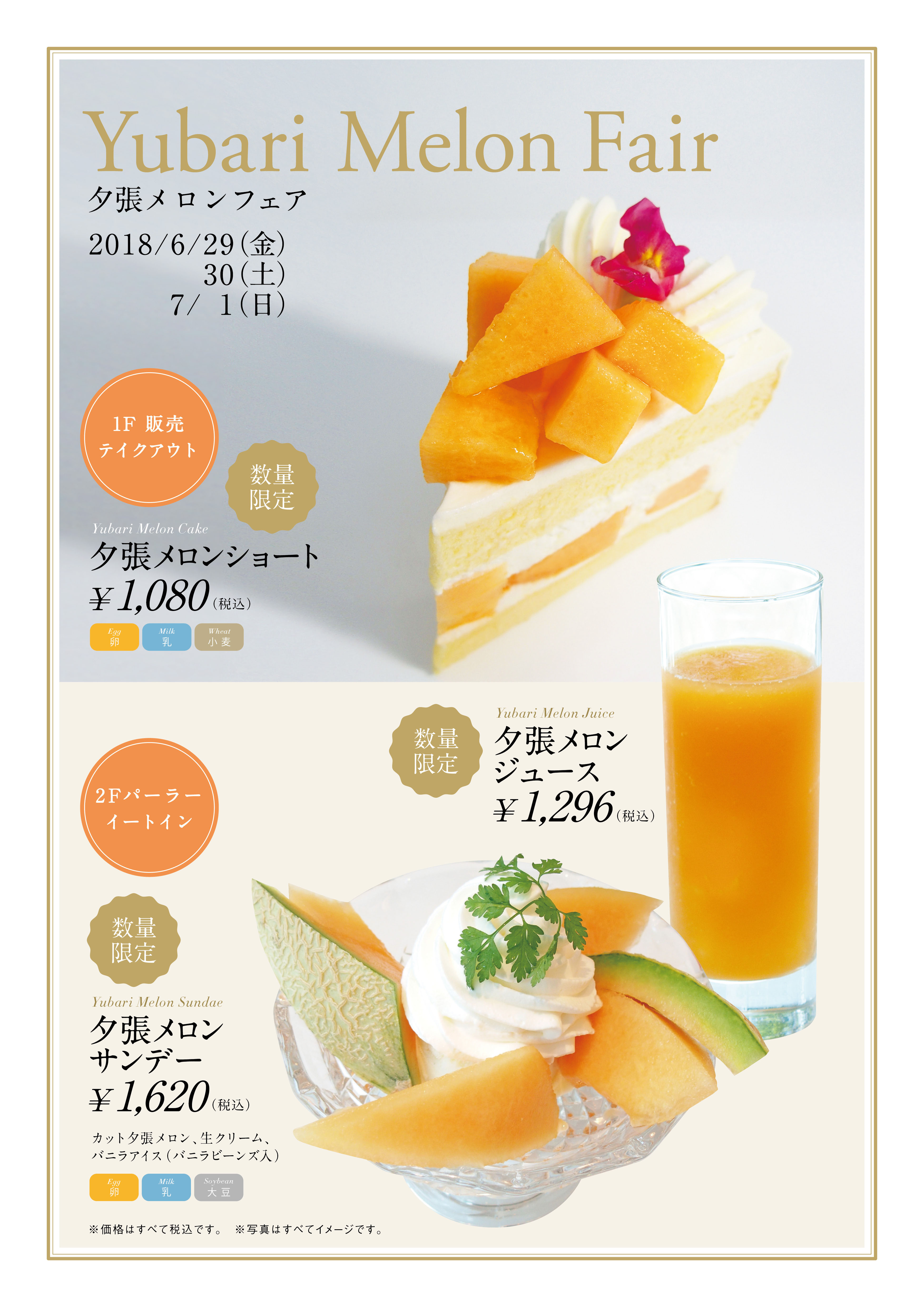 ・内容:カット夕張メロン、生クリーム、バニラアイス(バニラビーンズ入り)