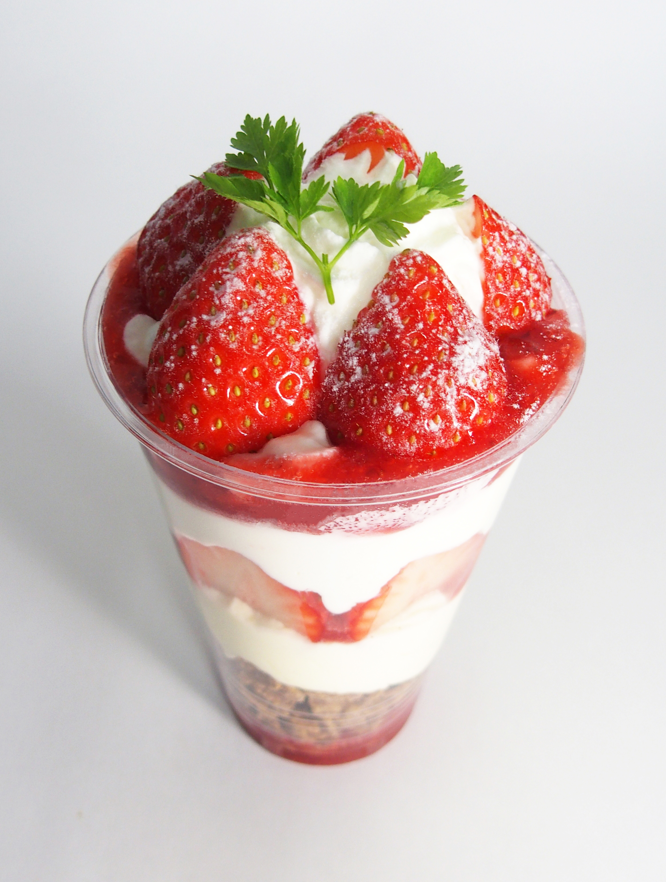 芳醇で甘酸っぱいいちごと相性ぴったりの、口当たり滑らかで、甘さ控えめのバニラムースを合わせたパフェです。