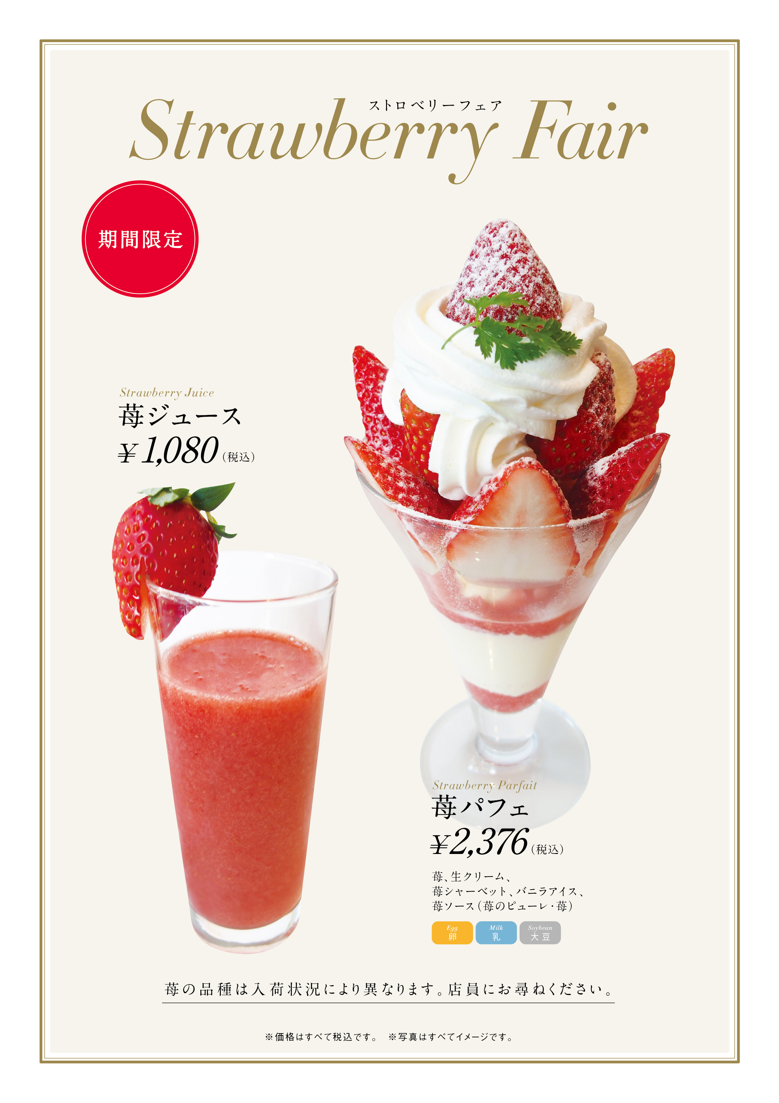 銀座本店 フルーツパーラーでは、12月4日(火)から苺フェアを開催いたします。