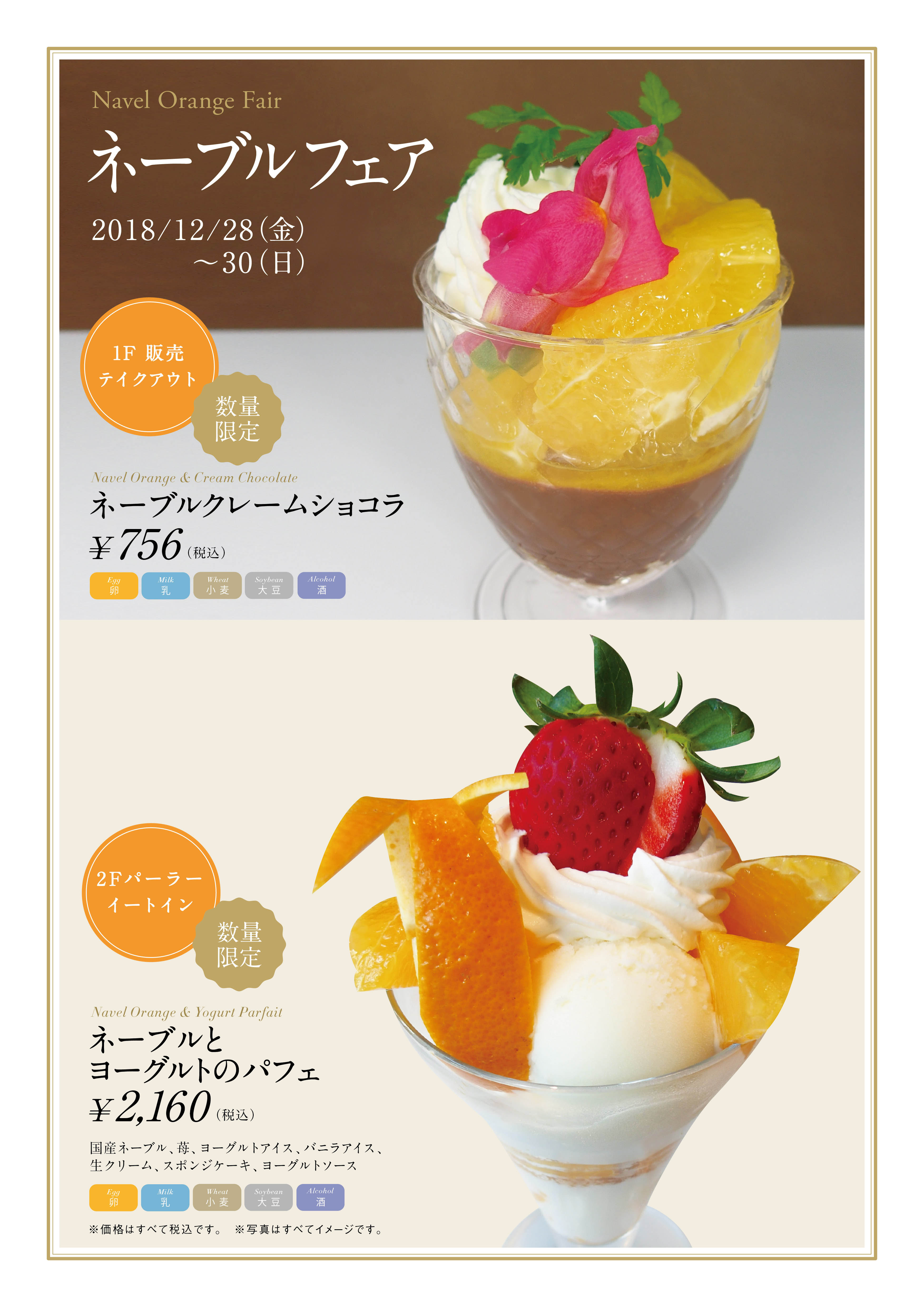 銀座千疋屋・パティスリー銀座千疋屋は、12月28日(金)〜12月30日(日)の期間限定にて、ネーブルを使用したスイーツを数量限定販売いたします。