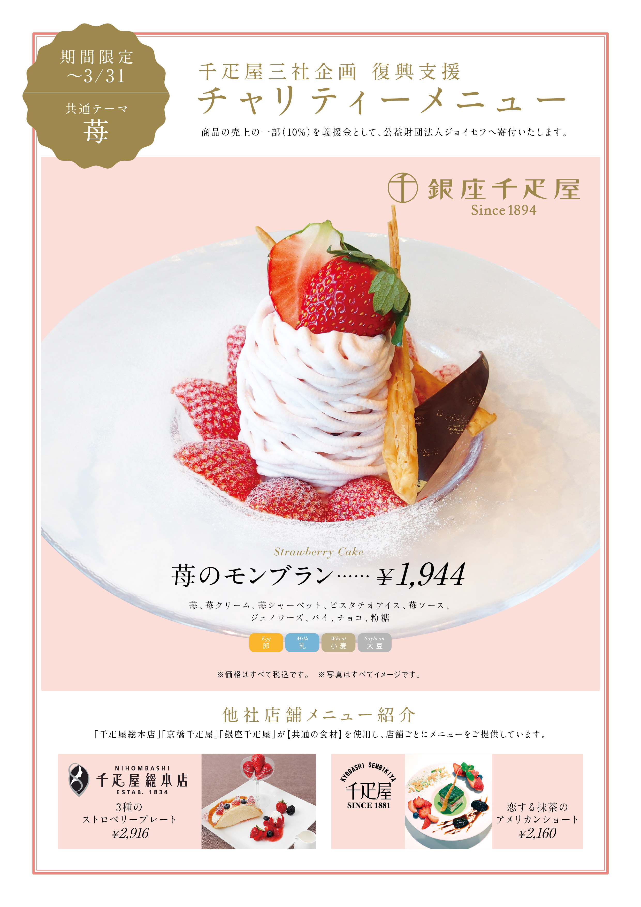 《銀座本店フルーツパーラー》千疋屋三社共同企画チャリティー"苺のモンブラン"